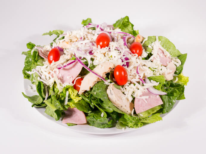 Tomatoes, Red Onion, Ham, Chicken, Provolone and Croutons.