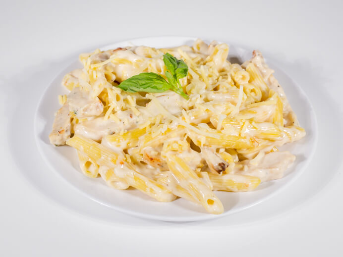 Alfredo Sauce, Mozzarella, Cheddar, Feta, Parmesan and Provolone Cheese