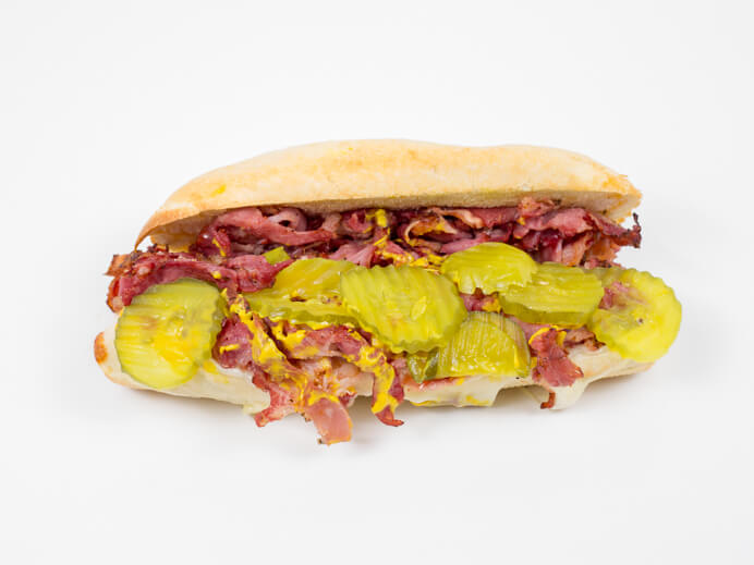 Pastrami, Mustard, Mozzarella Cheese, Pickles (Better than an open faced sandwich)